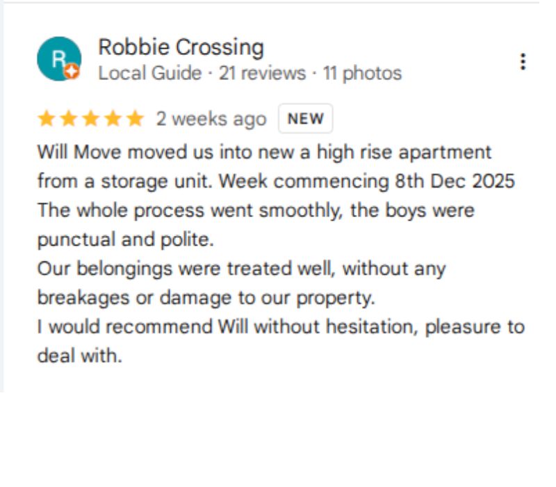 Moving is supposed to be a joyous experience. With Will Move on your side, you can get into your new property faster, giving you a moment to sit back, relax, and plan your future in your new property. Get in touch today for an obligation-free quote.